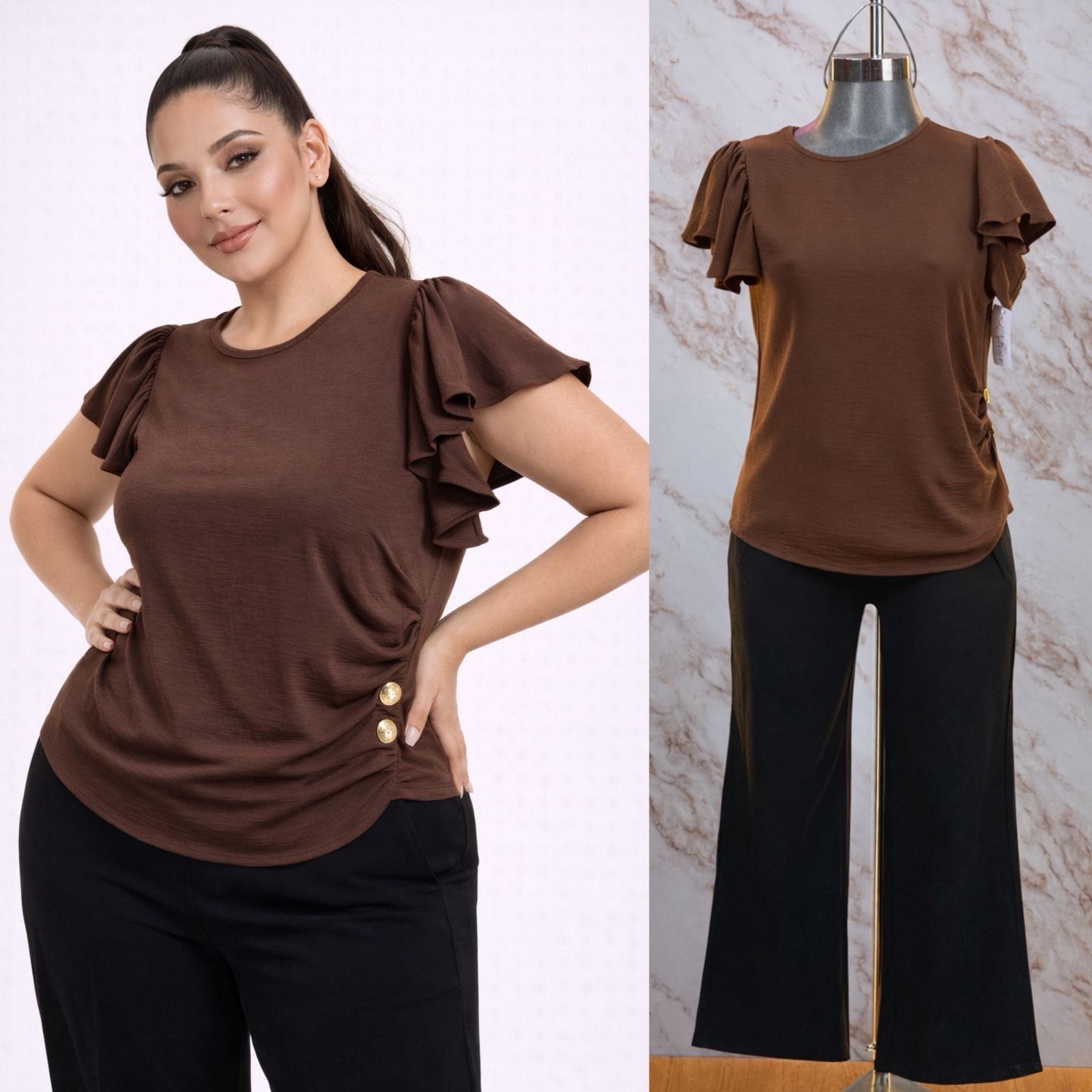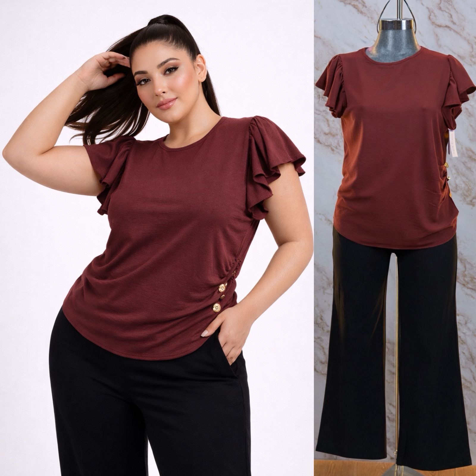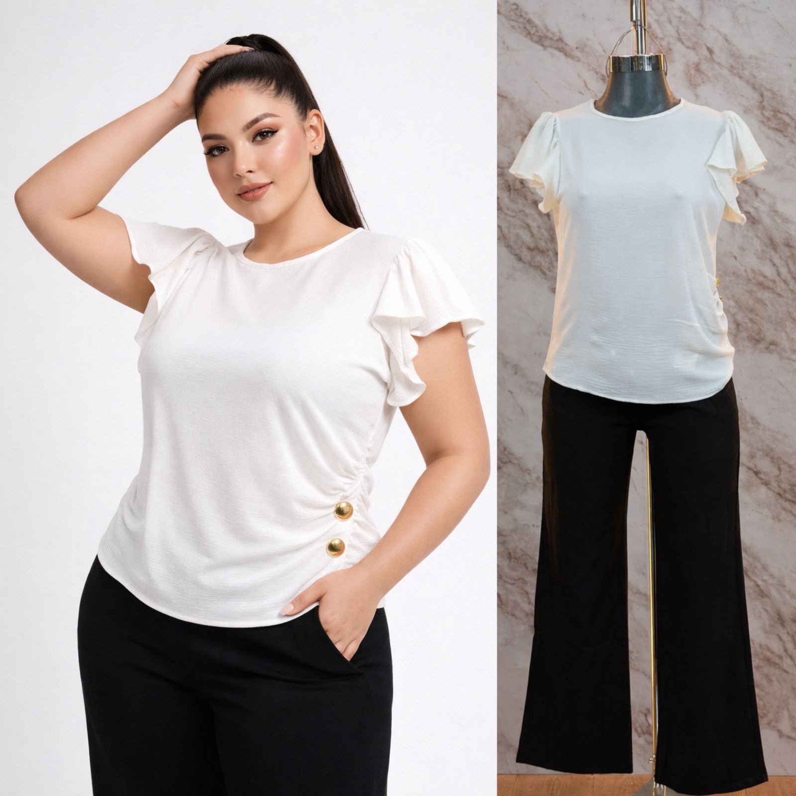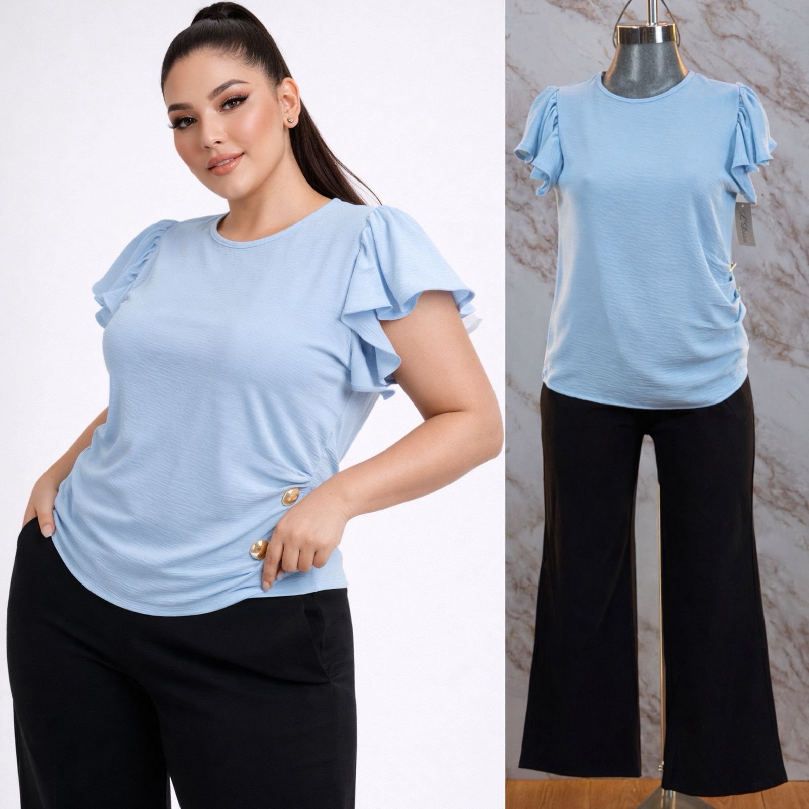 BLUSA CURVY PLUS BOTONES/OLAN