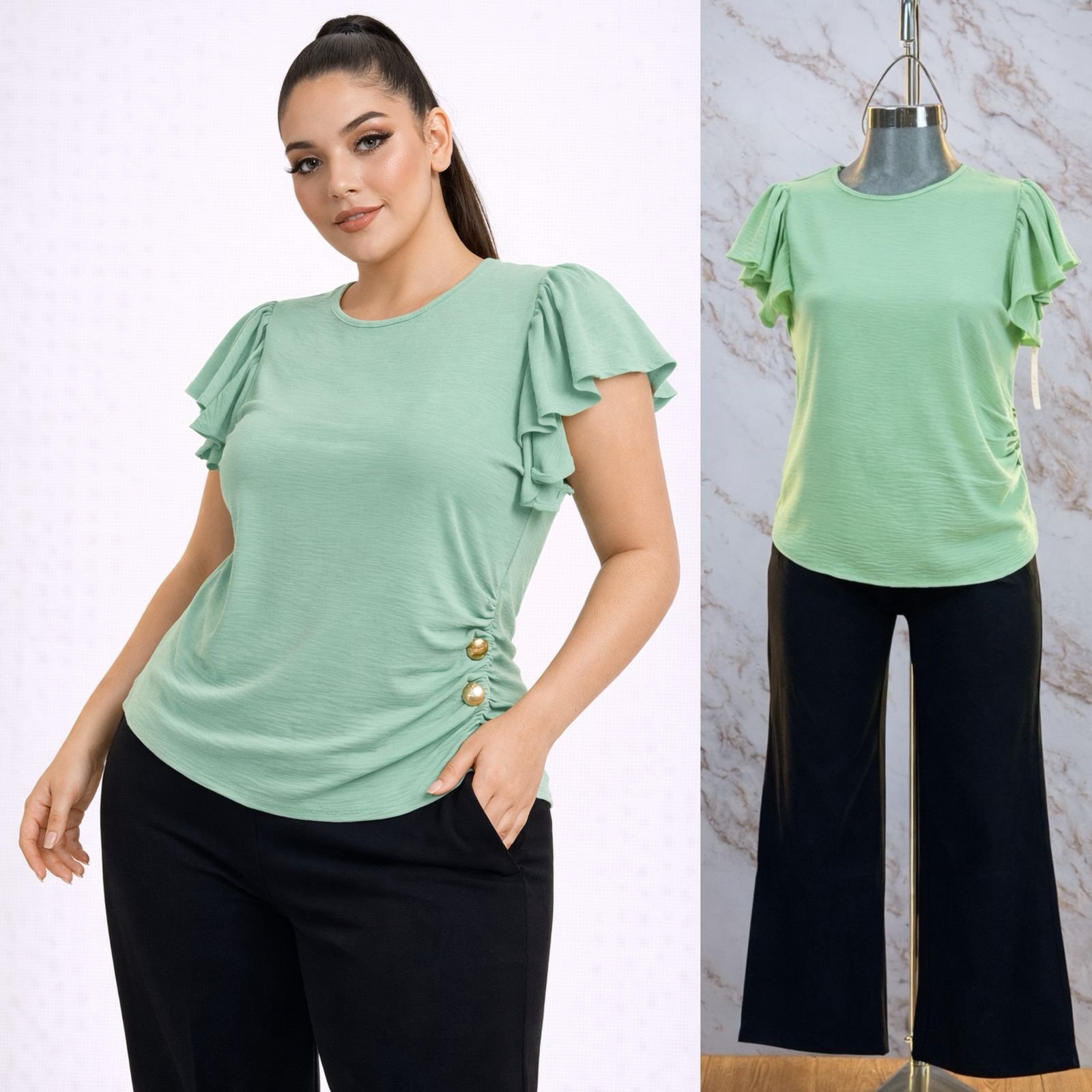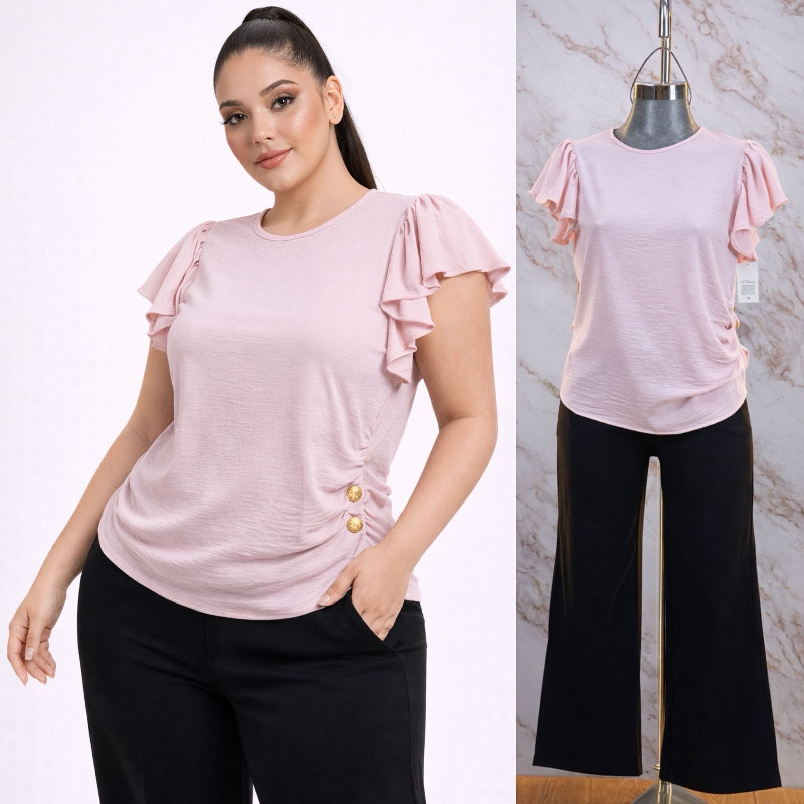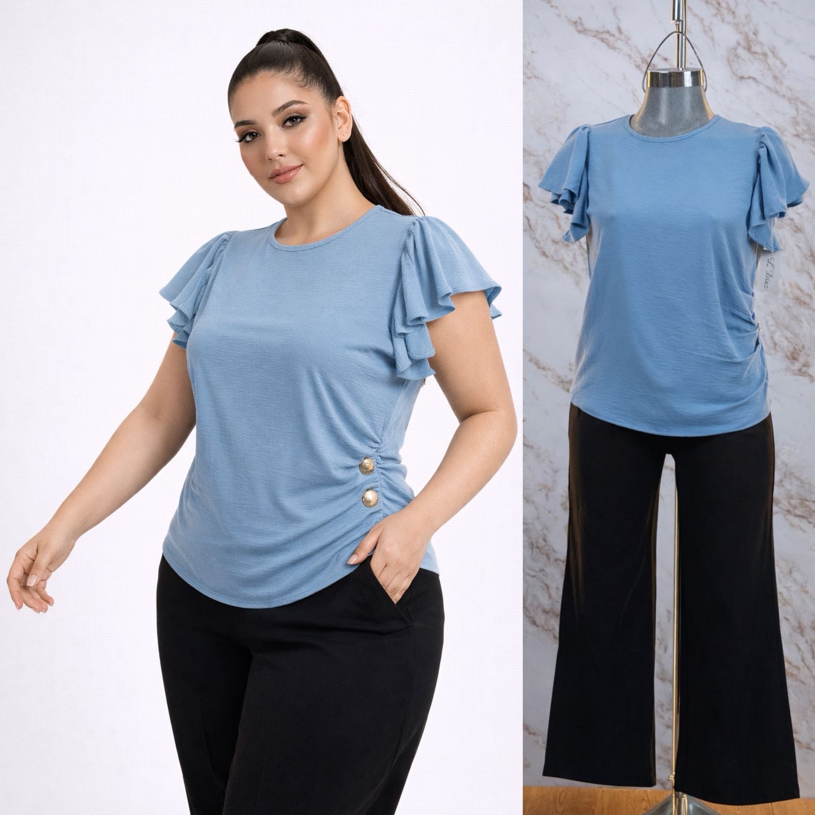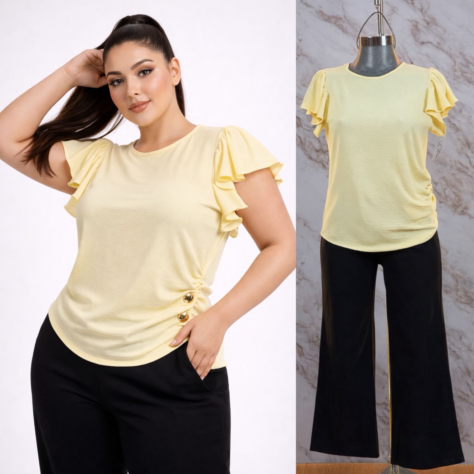 BLUSA CURVY PLUS BOTONES/OLAN