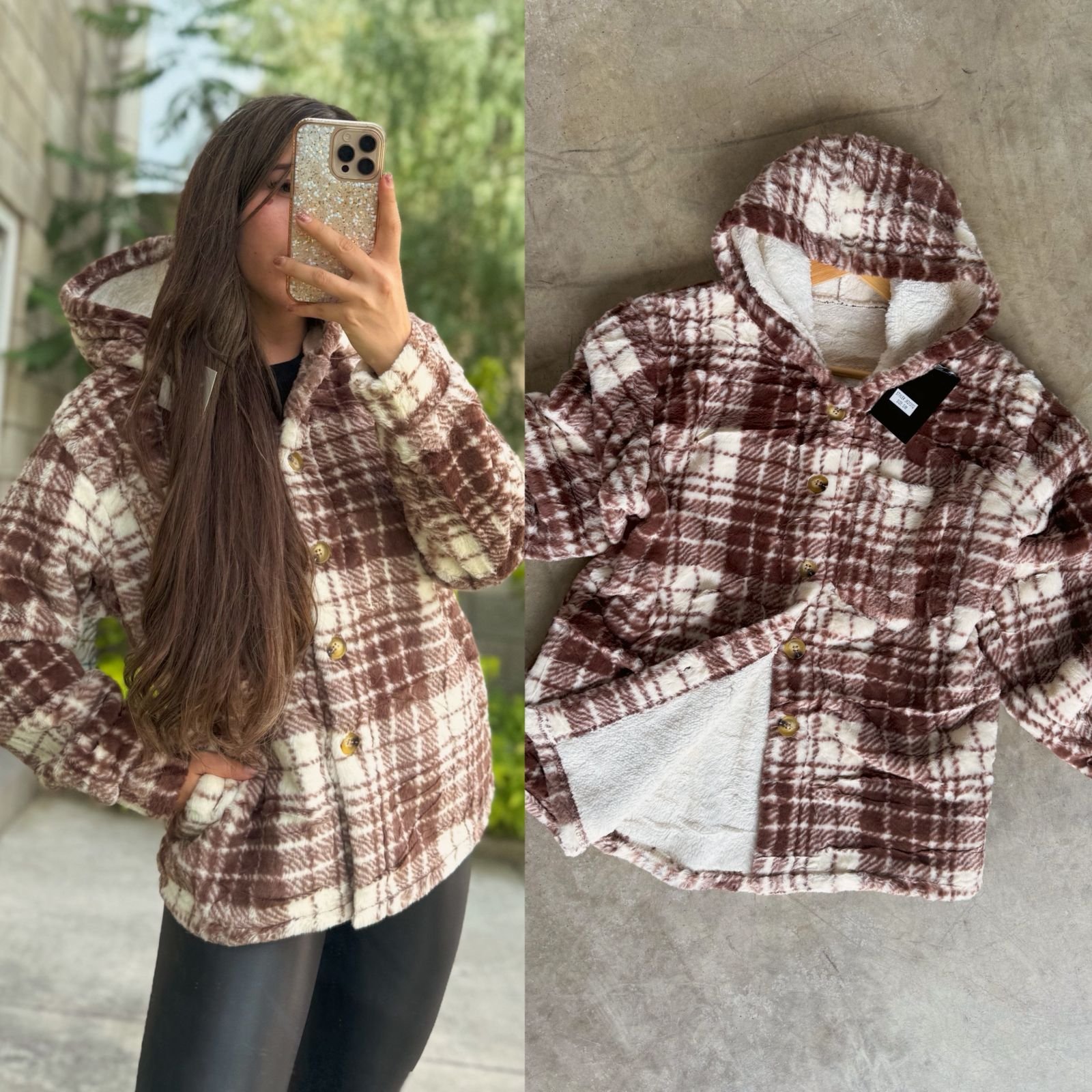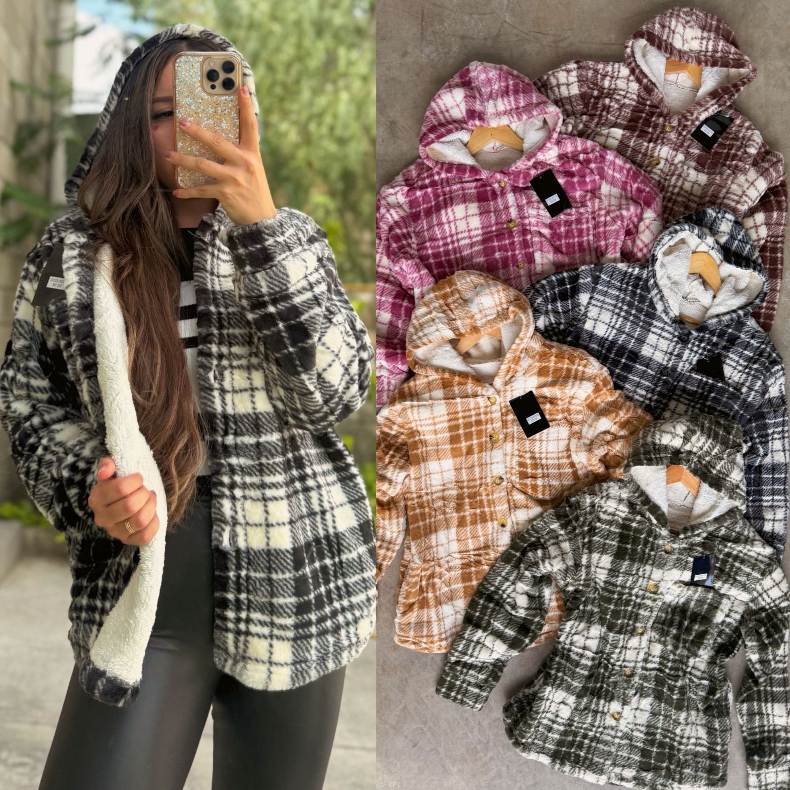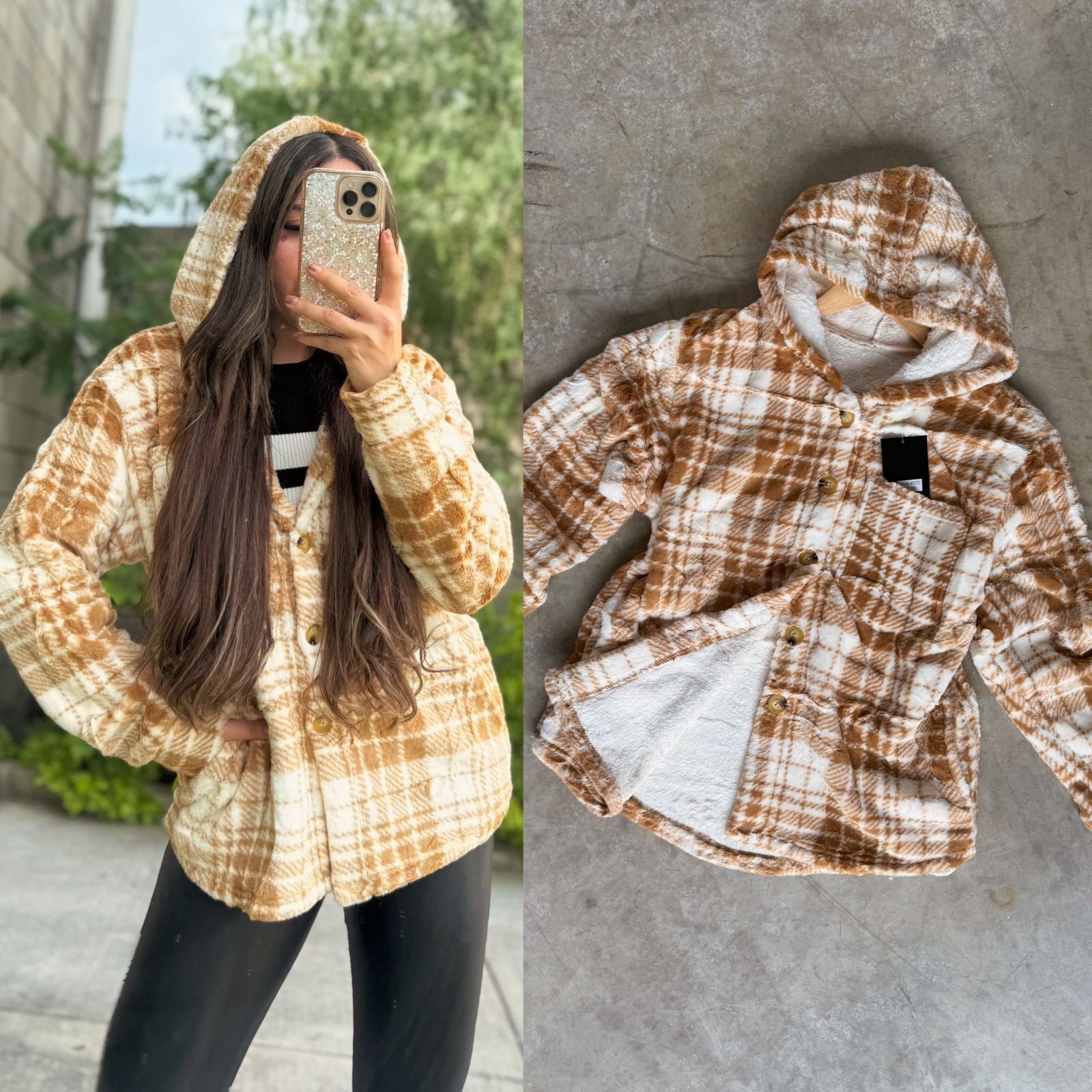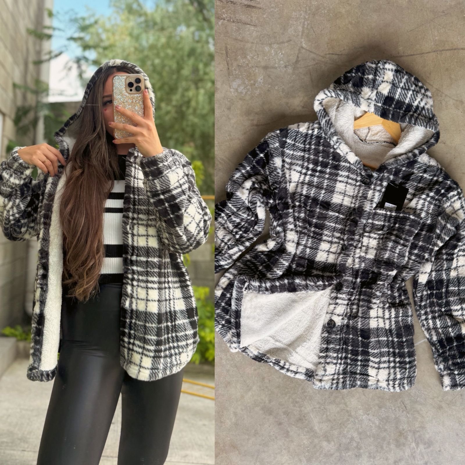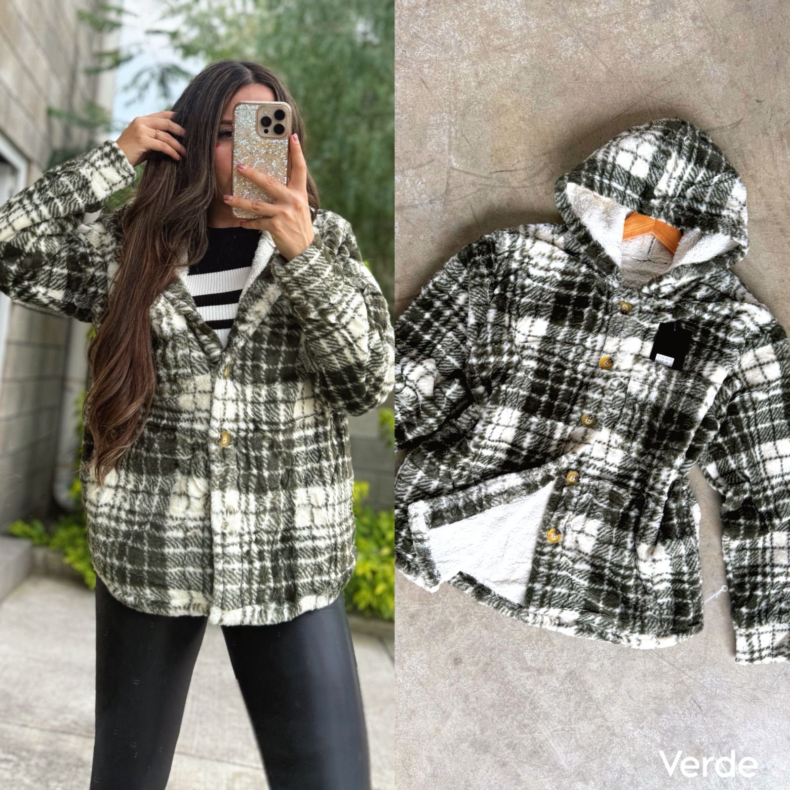 CHAMARRA APELUCHADA CON GORRA Y BOTONES