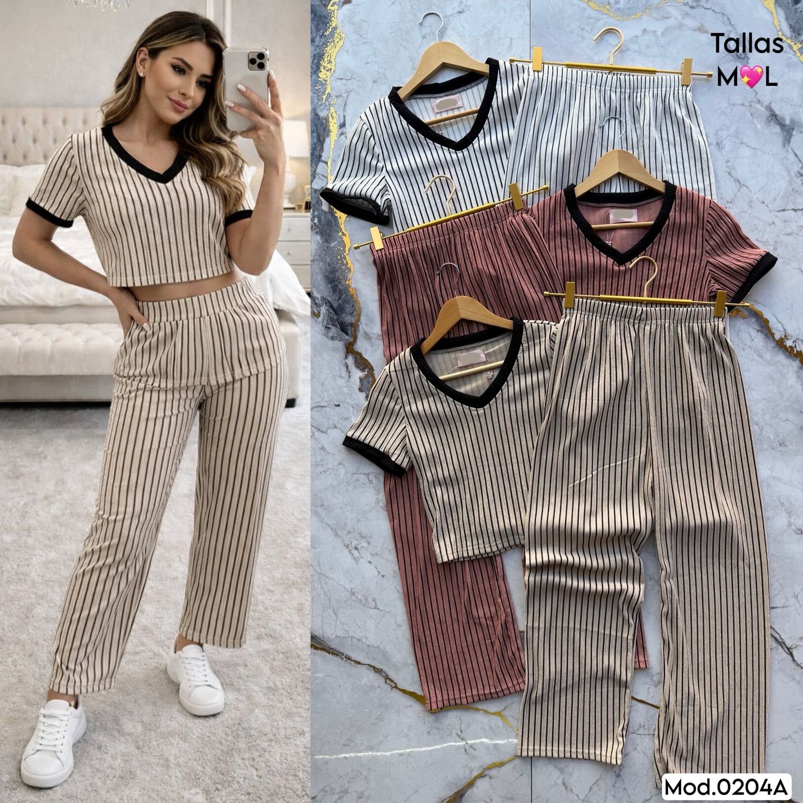 CONJUNTO 2 PIEZAS RAYAS CUELLO V 0240A