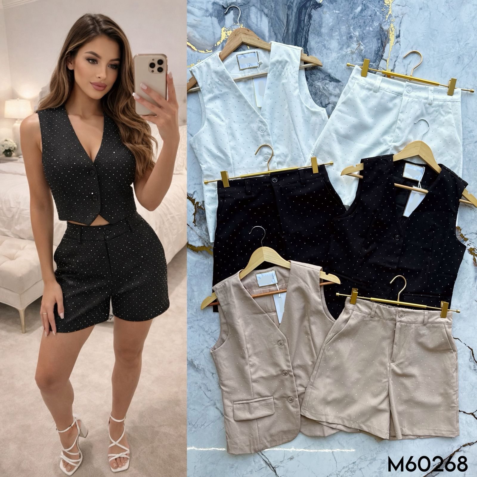 CONJUNTO CHALECO/SHORT PEDRERIA 0268