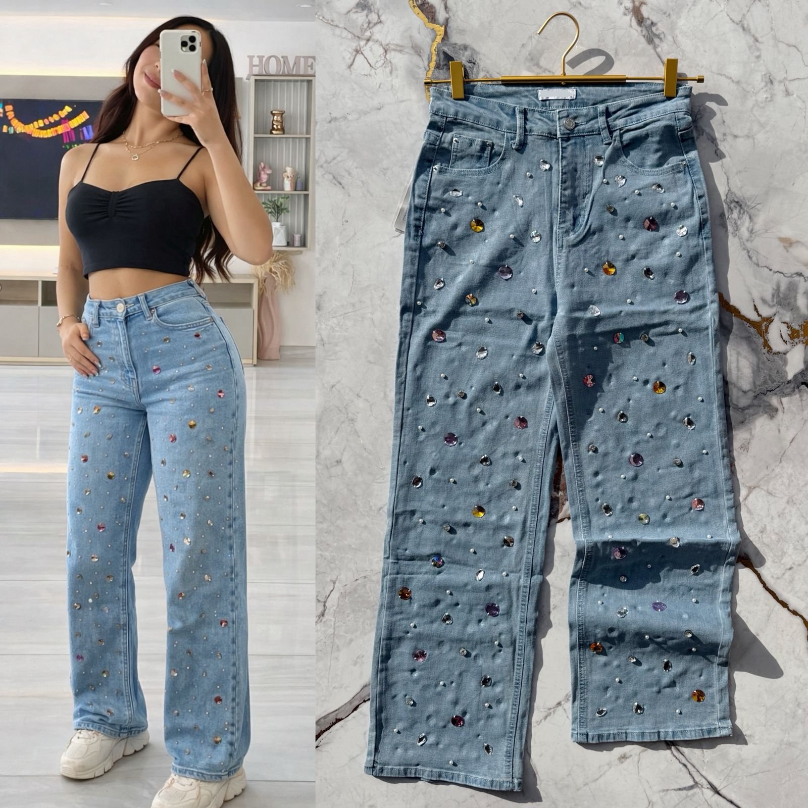 👖 Mezclilla strech súper cómoda y pedrería reforzada, máximo detallado premium. 👌🏻