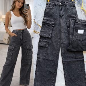 PANTALON CARGO MEZCLILLA BRILLOS