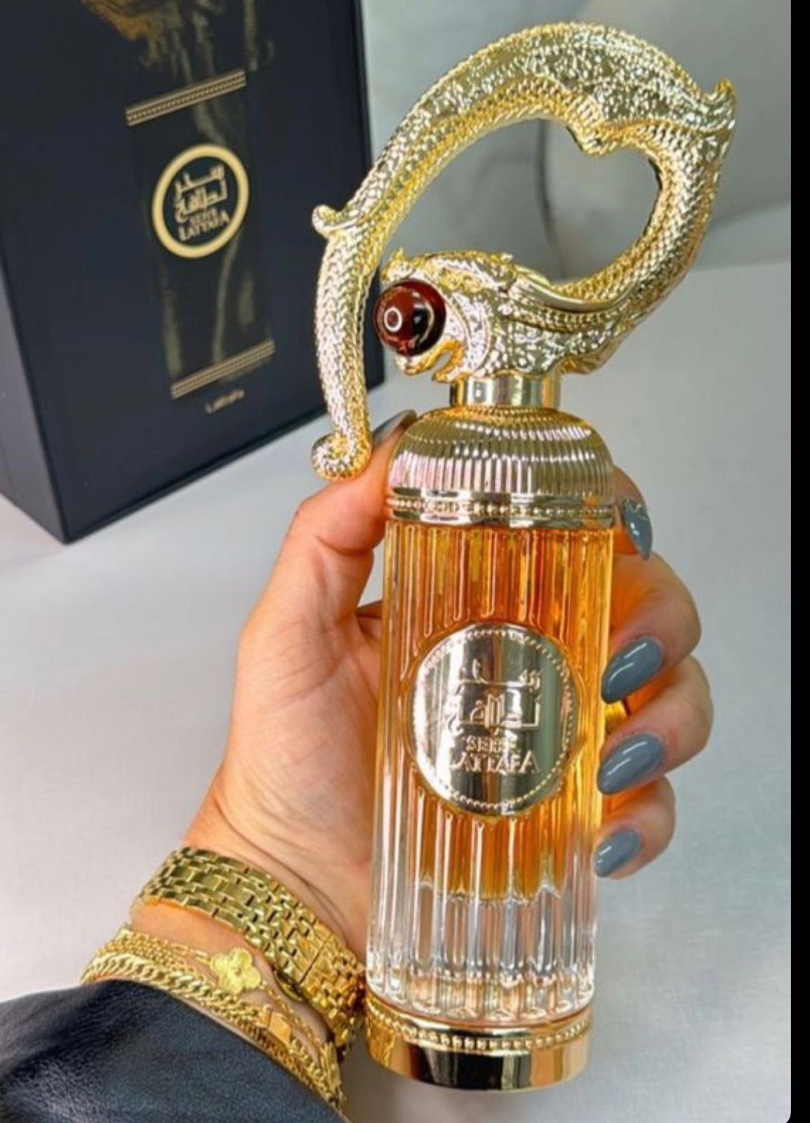 💎 Destaca por su aroma intenso y refinado, además de su espectacular frasco con diseño dorado y figura ornamental que lo convierte en una verdadera pieza de colección ✨