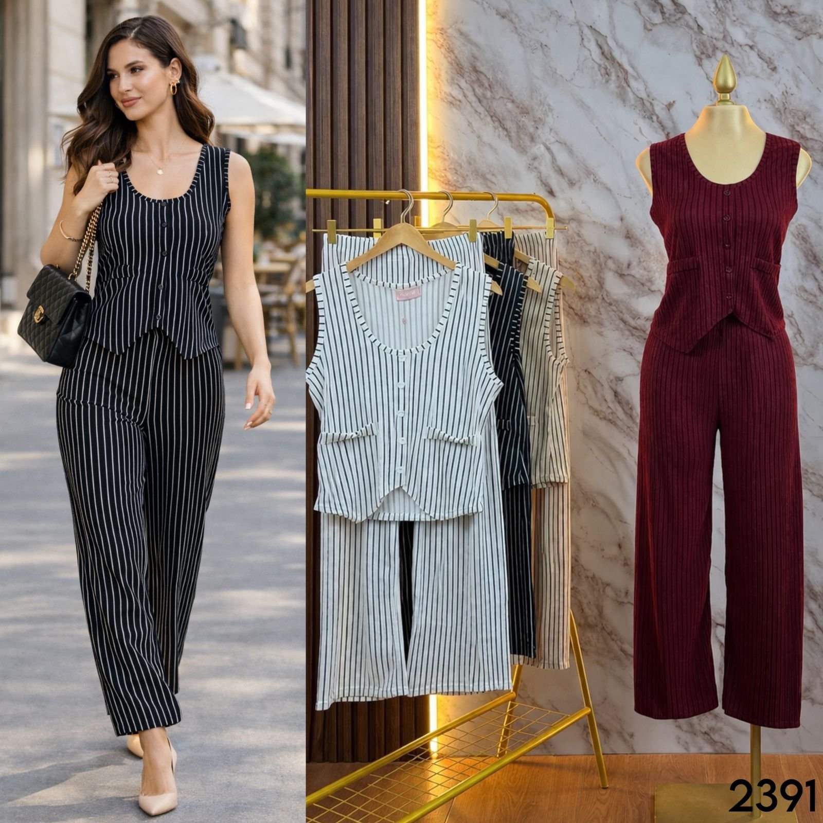 SET/CONJUNTO 2 PIEZAS RAYAS/CHALECO 2391