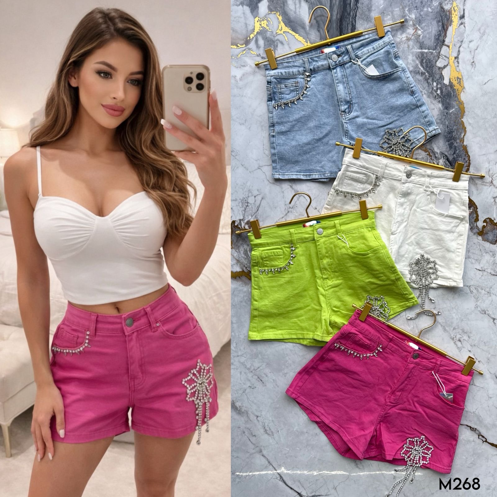 💖Short denim con pedrería premium ✨