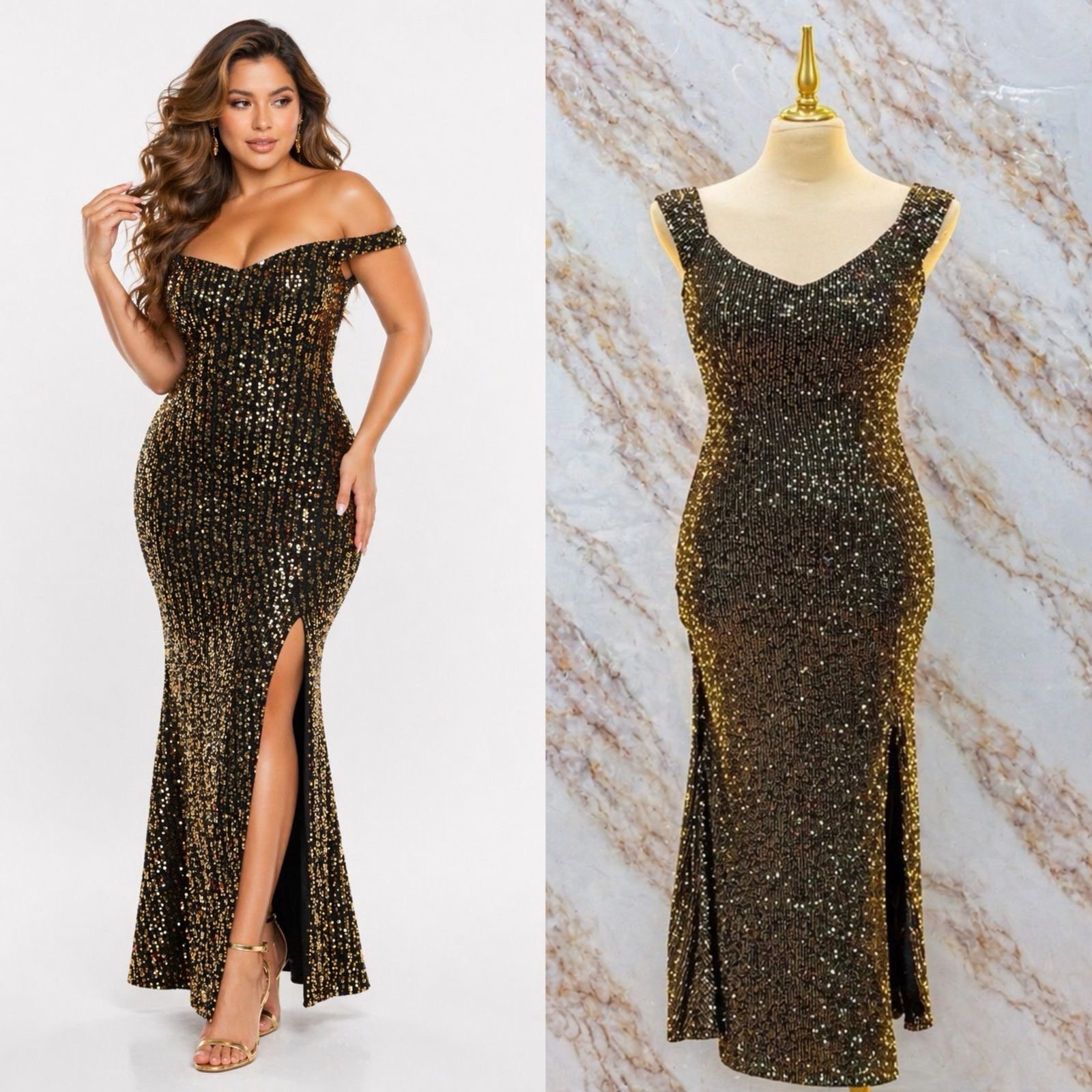VESTIDO DE FIESTA COMPLETO LENTEJUELA