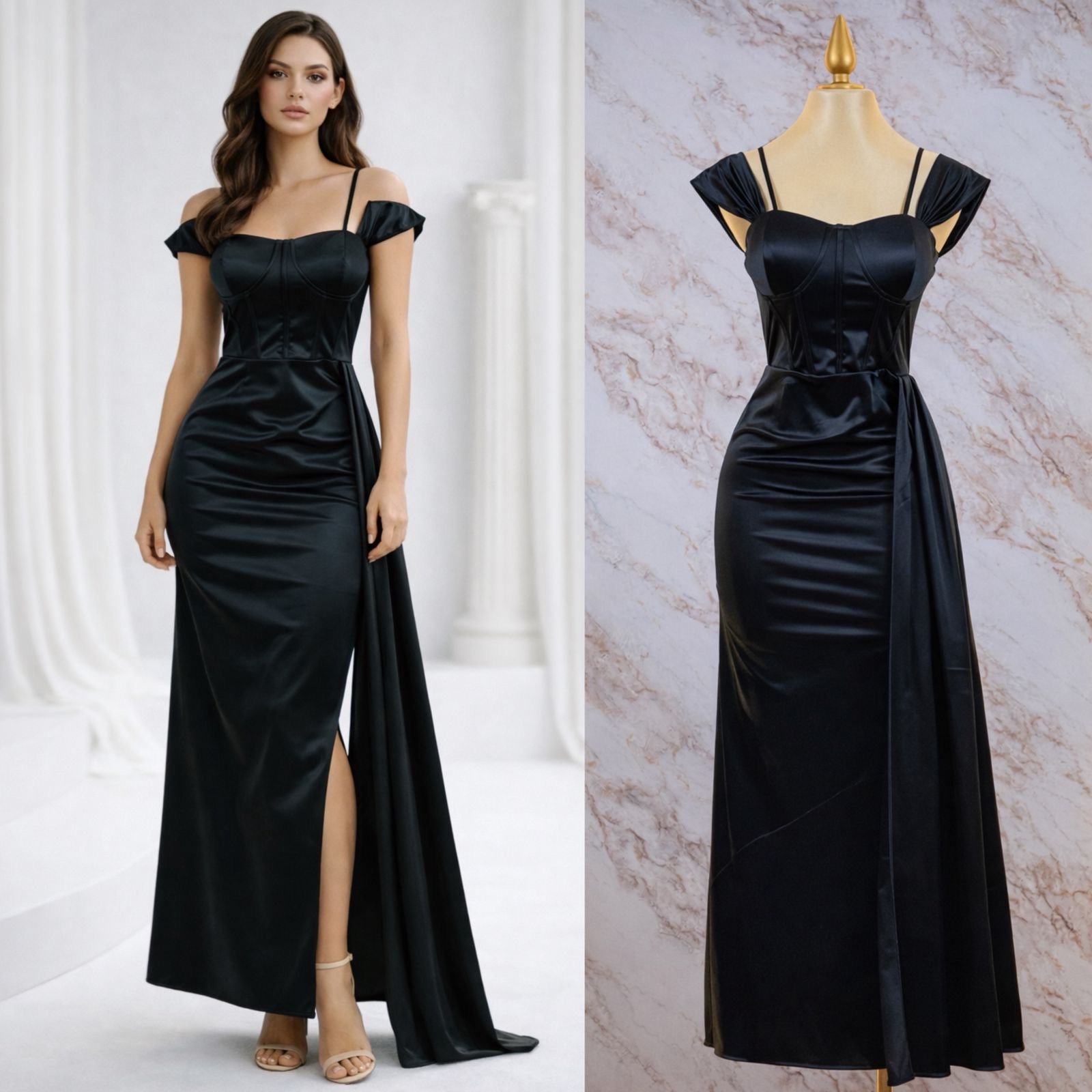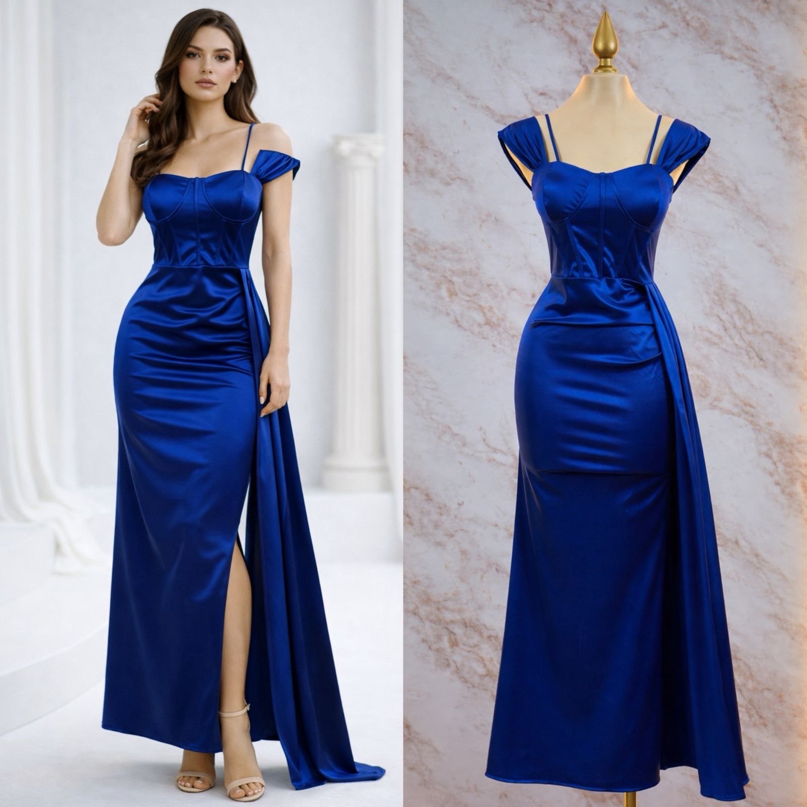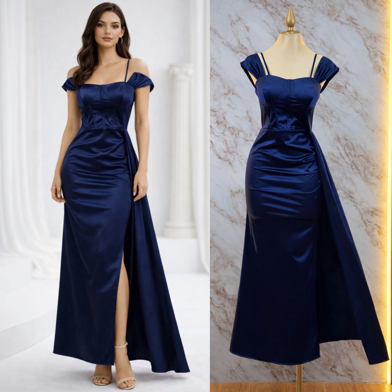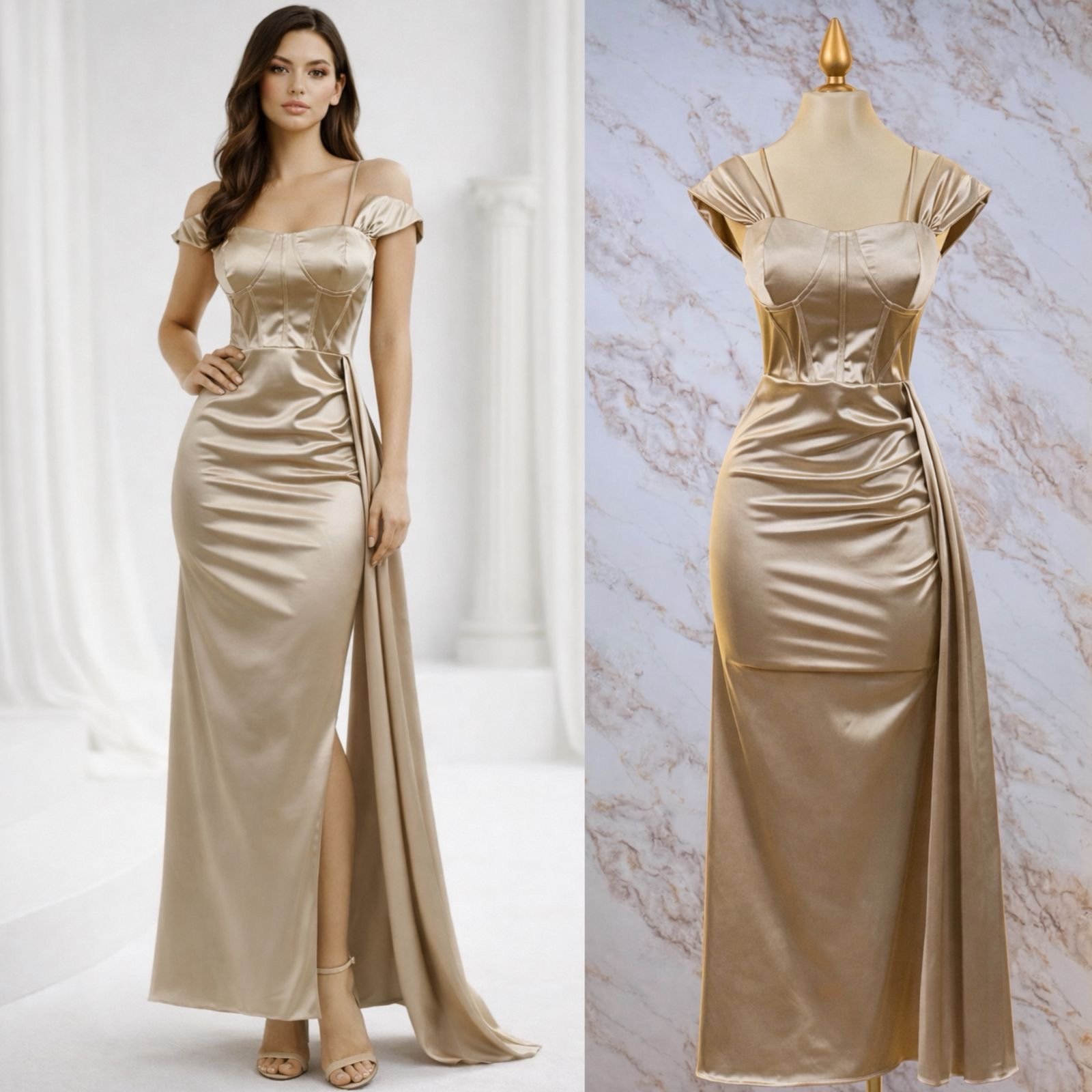 VESTIDO DE FIESTA HOMBROS CAIDOS/CAUDA