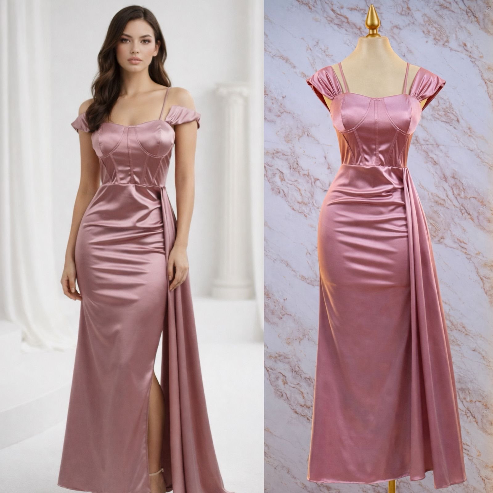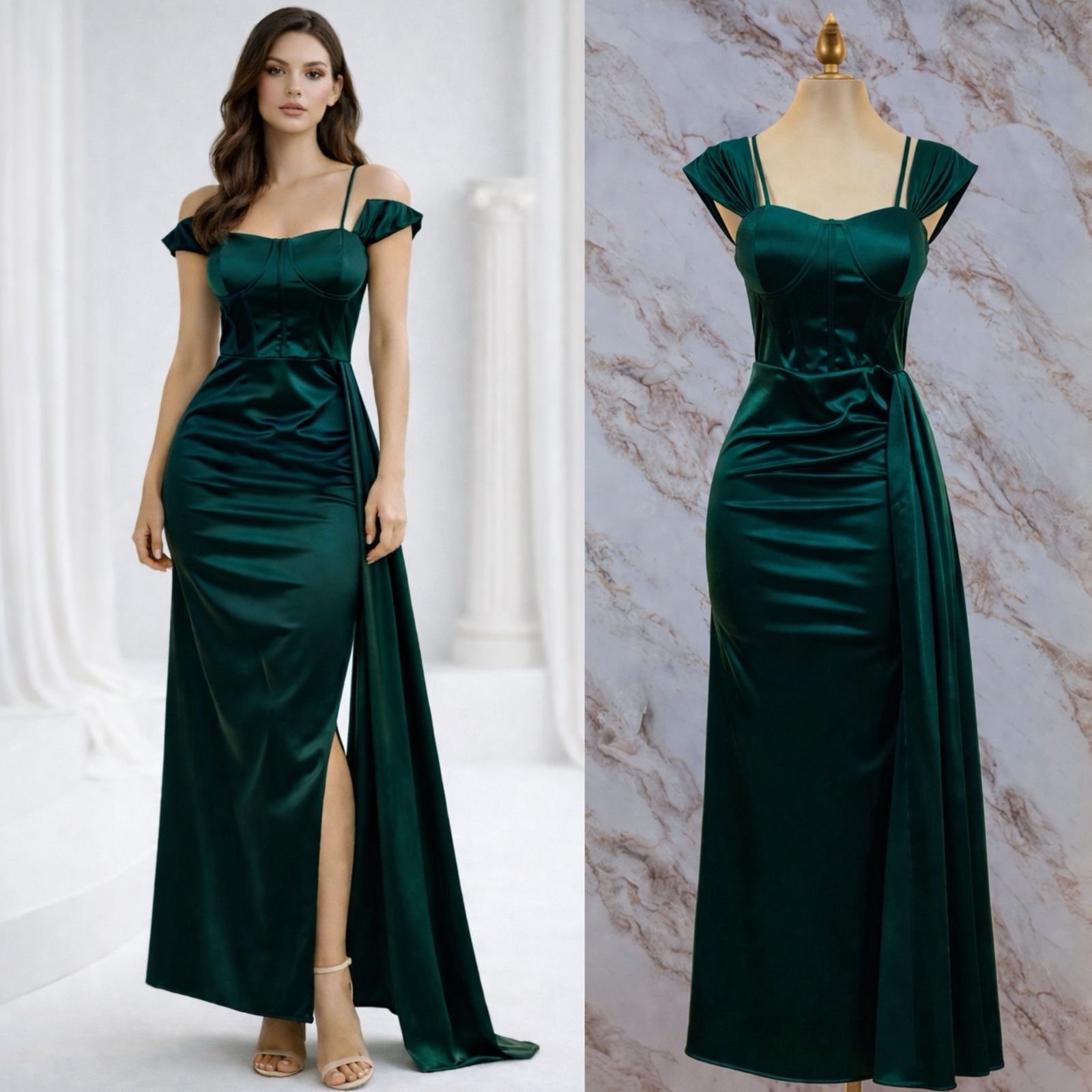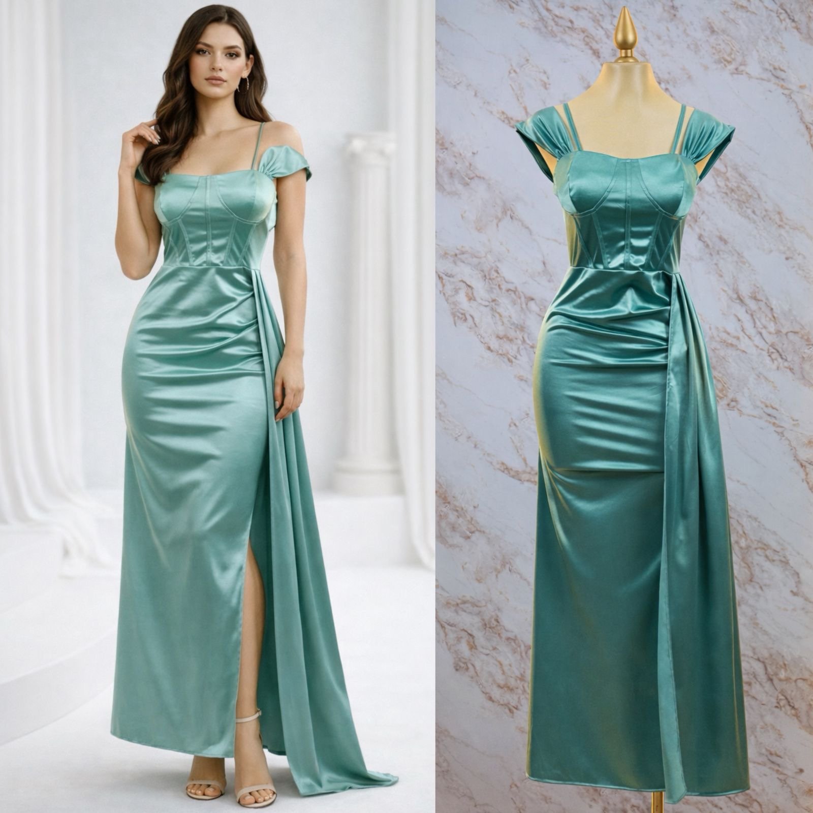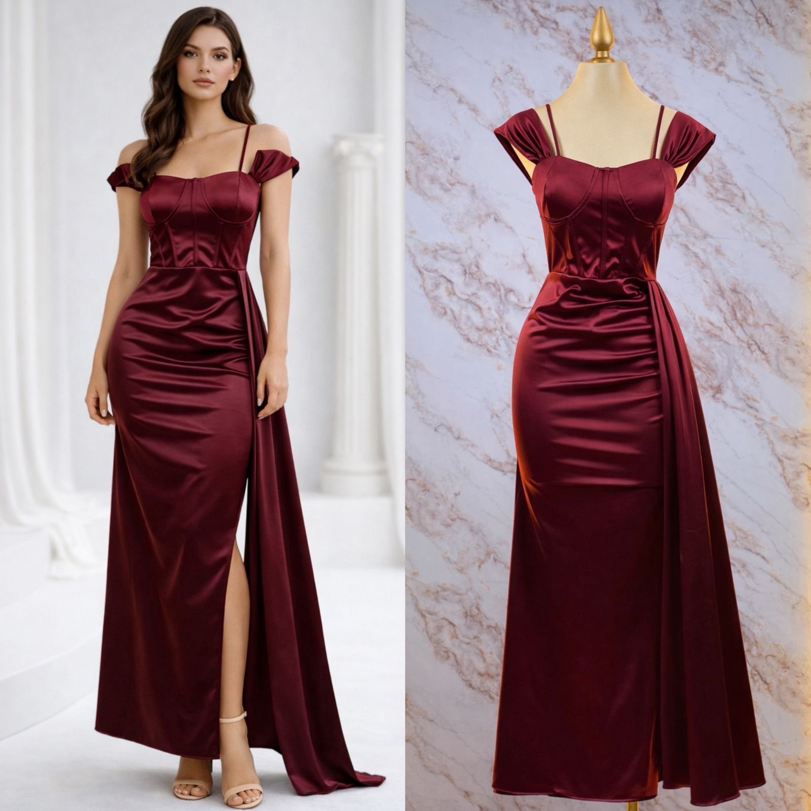 VESTIDO DE FIESTA HOMBROS CAIDOS/CAUDA