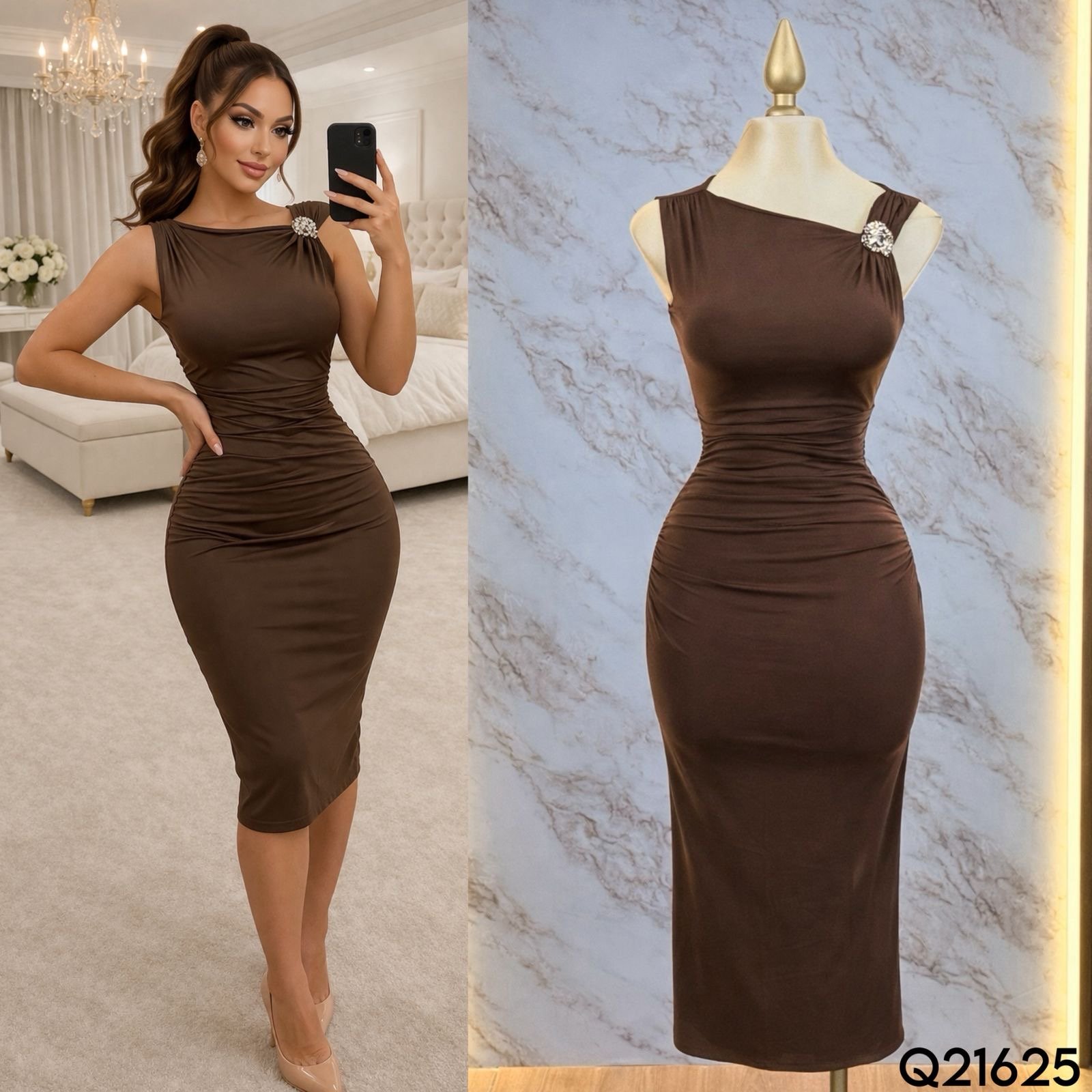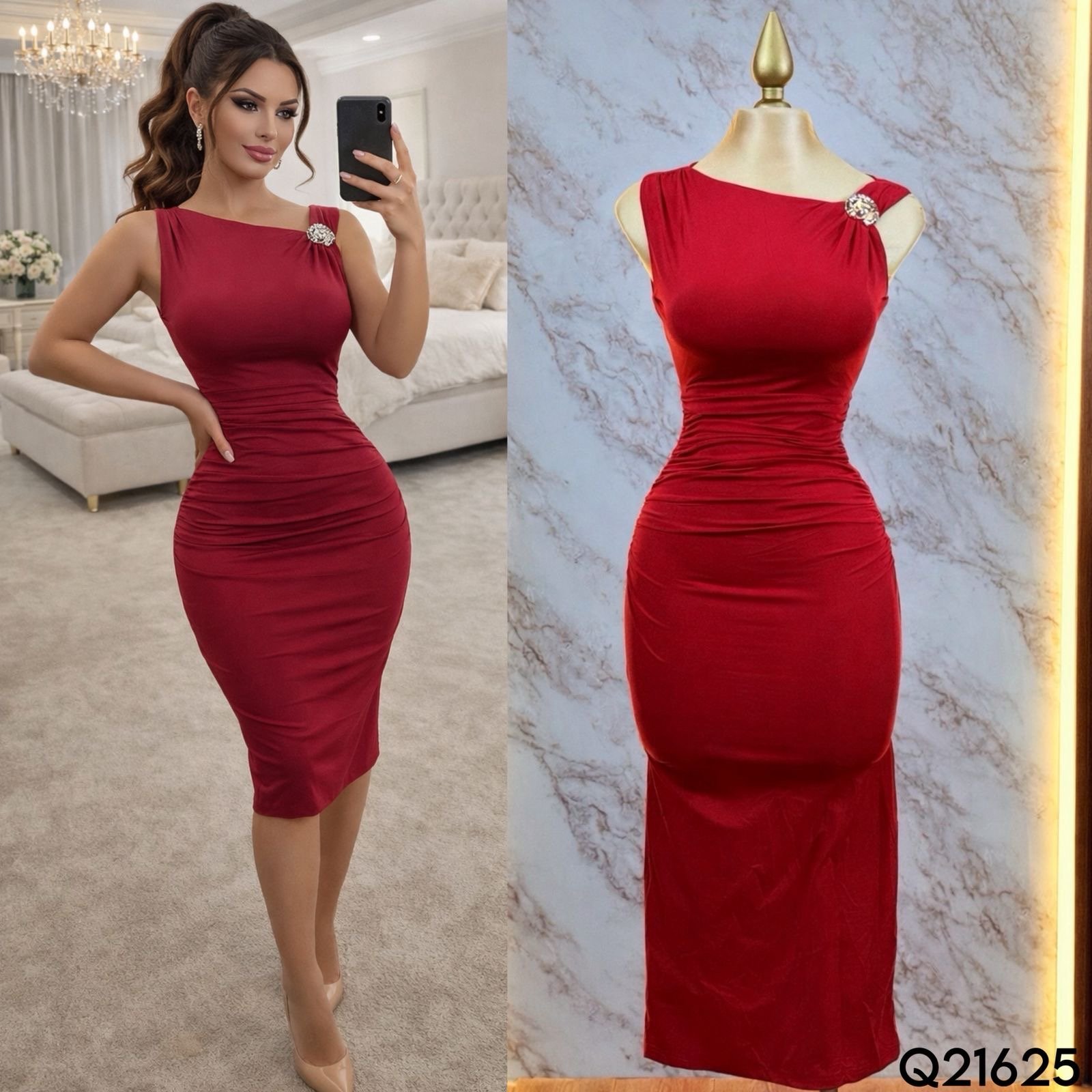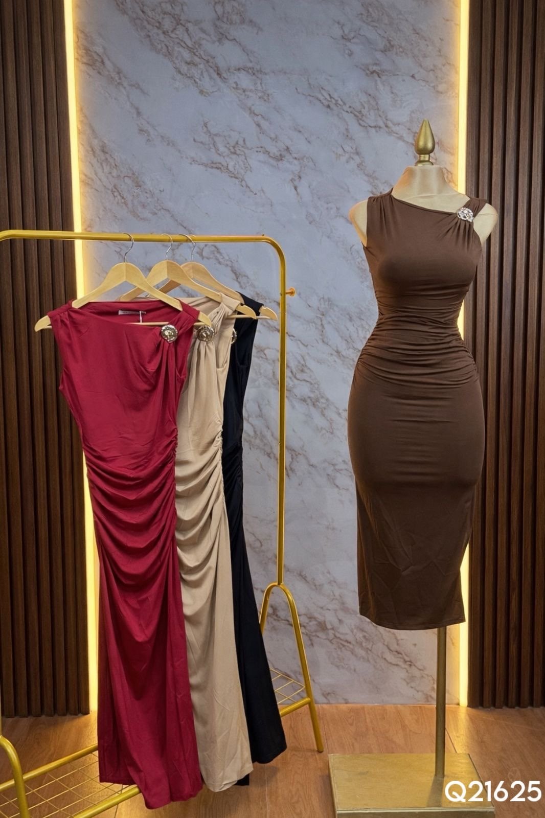 VESTIDO LISO BROCHE/HOMBRO 21625
